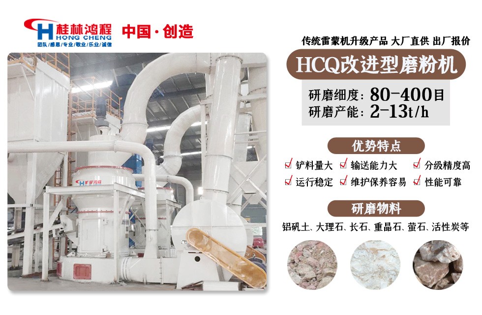 桂林鸿程龙头本色尽显!磨粉设备持续走俏市场 2021年10月21日 到目前为止,形成HC系列纵摆磨、HLM系列立式磨、HCH系列超细环辊磨、HLMX超细立式磨粉机等4种系列磨粉机主打产品,涵盖20目粗粉到2500目超细粉,1-200t/h产能型号,为全球粉体制